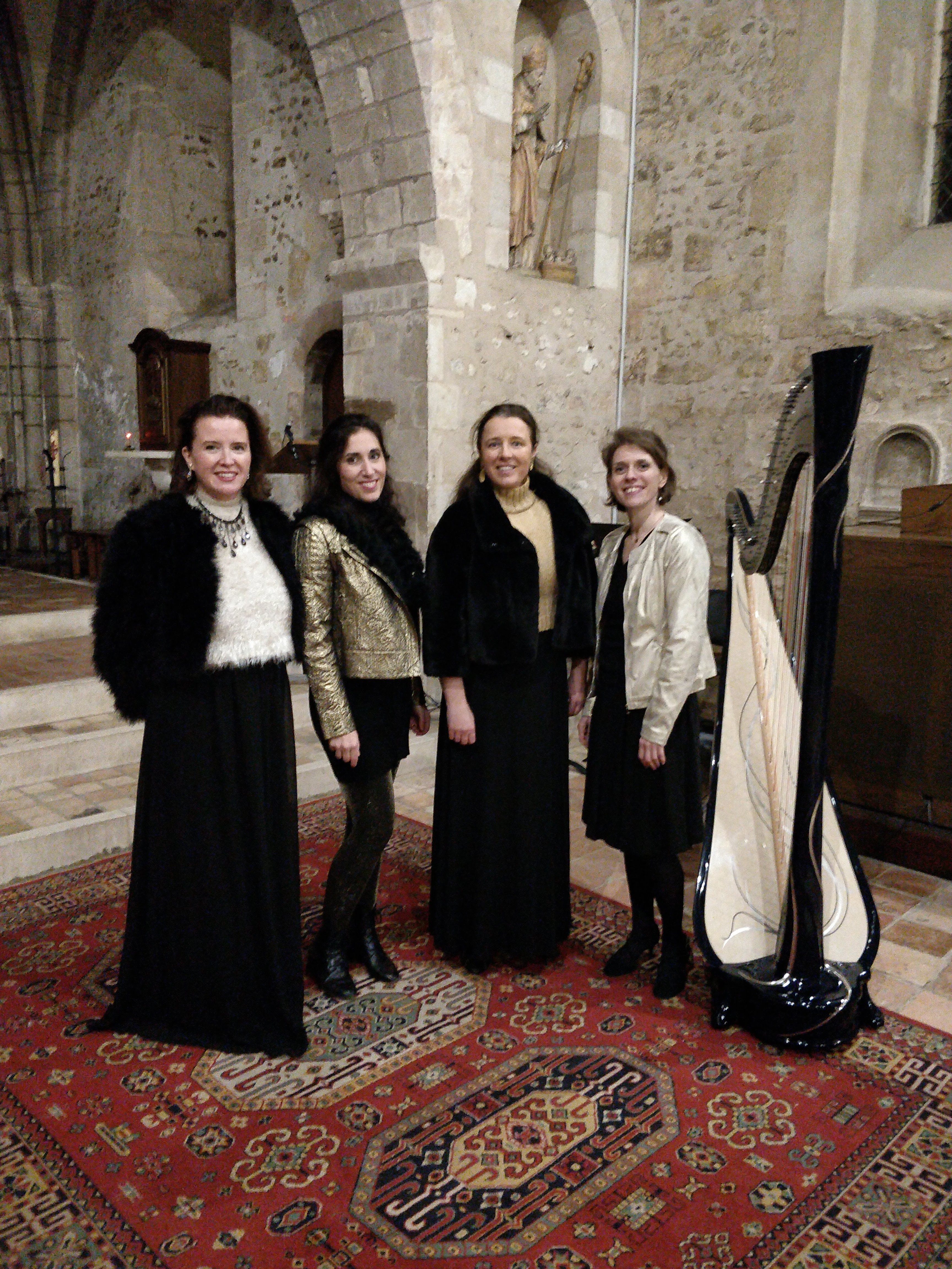 Les racines des Carols remontent au Moyen âge : il s’agissait de chants païens, dansés et chantés lors des fêtes du solstice d’hiver qui symbolisait le retour de la lumière. Ils ont été intégrés à la tradition religieuse au fil du temps. C’est au 19ème siècle qu’ils sont devenus plus spécifiques à la période de Noël avec un grand enthousiasme en Angleterre, notamment à travers le roman de Charles Dickens, A christmas Carol, qui aurait popularisé l’expression « Merry Christmas ». Ce concert est un voyage dans la magie de cette fête avec un florilège musical mêlant les Noëls populaires anciens, des œuvres classiques et les traditionnelles chansons venues d’Outre-Atlantique. Les trois chanteuses sont accompagnées par la harpe, instrument indissociable de la féérie de Noël.