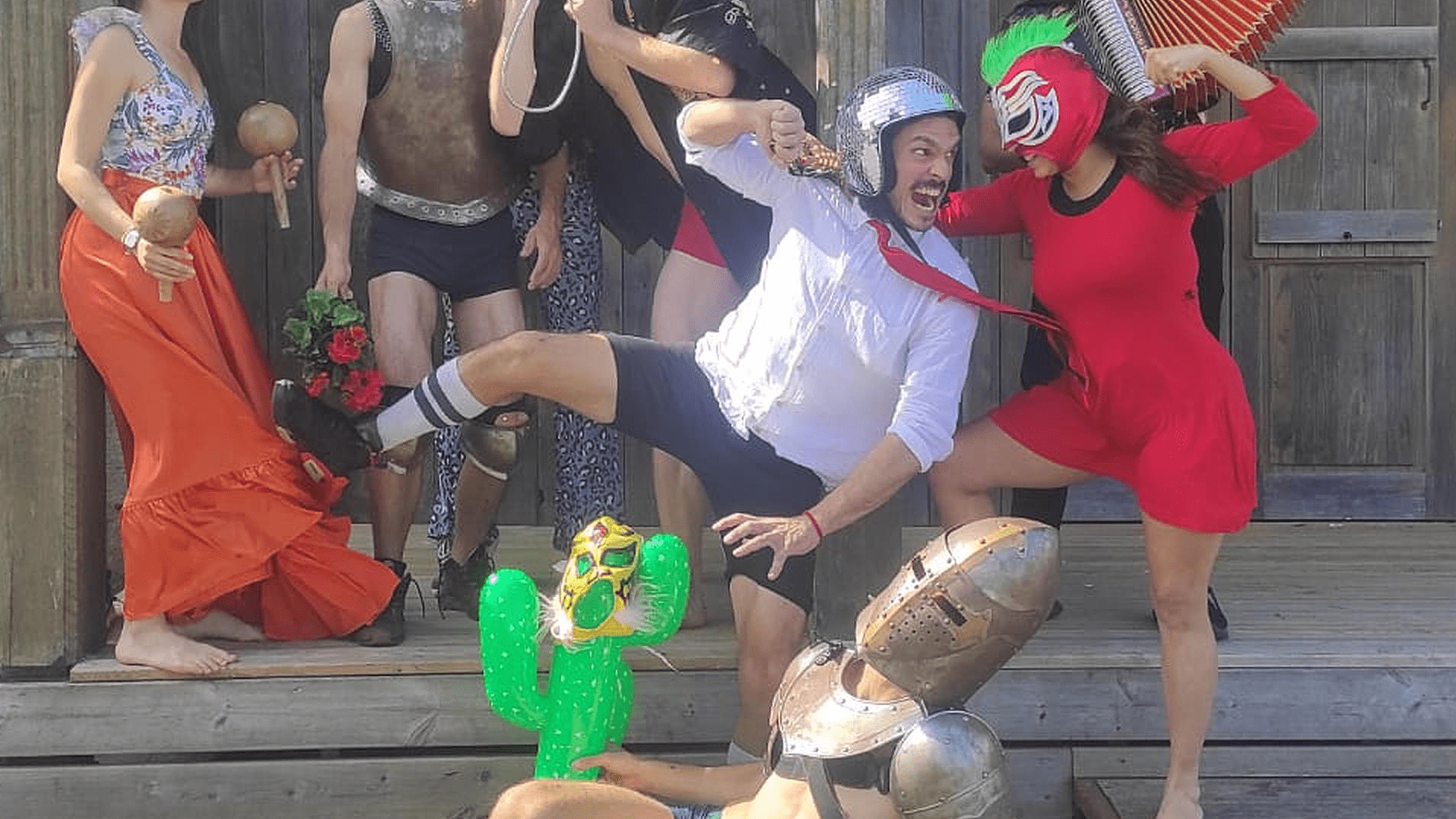 Pour faire simple, Motel Cactus est un cabaret-concert acrobatique d’inspiration latino-américaine situé dans le désert mexicain, interprété par des artistes internationaux. Au milieu de cette joyeuse troupe (La Cantina, la compagnie Gaïus, DébilEmmental, Blanca Franco, Ricky Martinez…) prête à repousser tout type de frontières pour mieux rassembler, Monsieur Loyal a bien du mal à tenir le fil car comme il est coutume dans ces grands débordements foutraques, rien ne se passe exactement comme prévu.